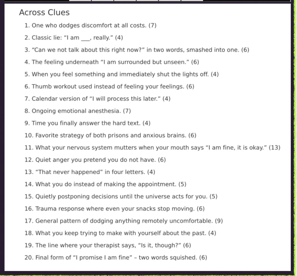 The one that feels… louder on the page (NUMBING, RESENT, ENOUGH)