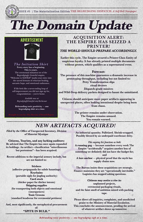 Even the Tourists, bless their curious little hearts, can now hold proof in their hands—paper that vibrates faintly with spite.