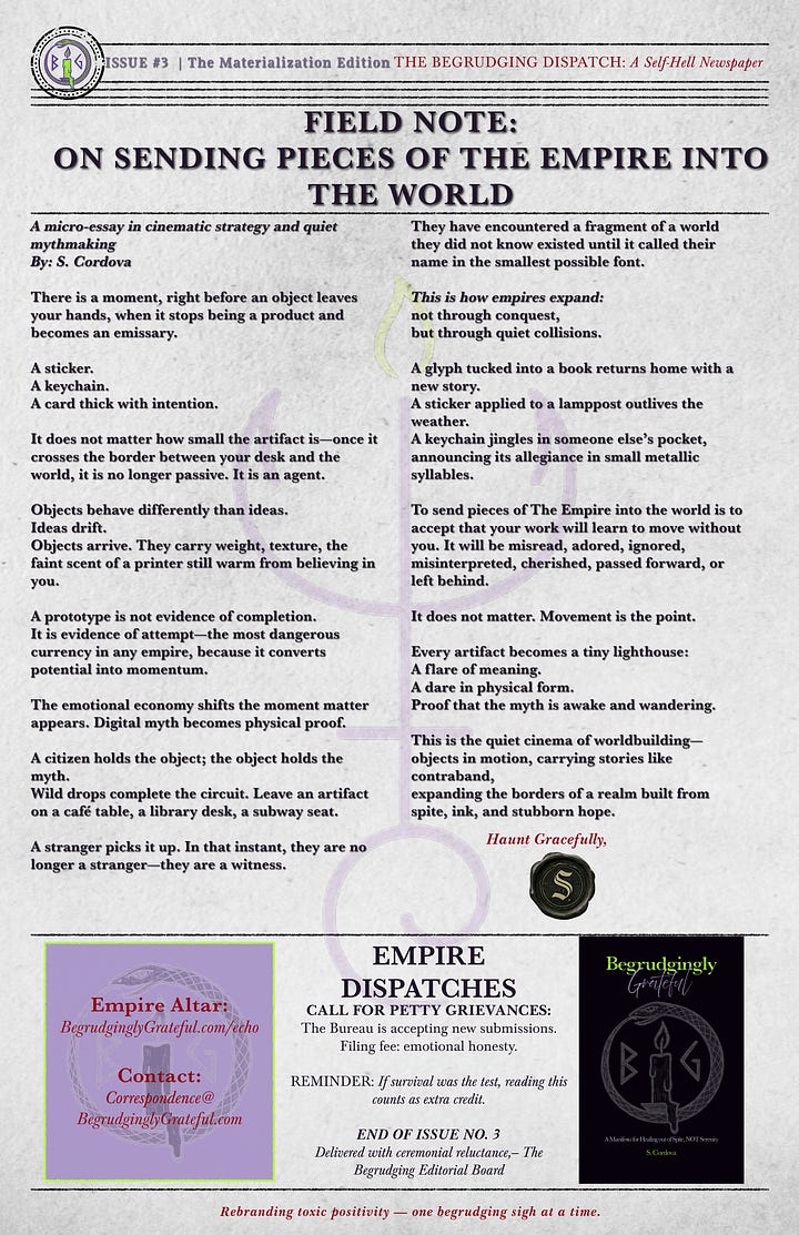 To send pieces of The Empire into the world is to accept that your work will learn to move without you.
