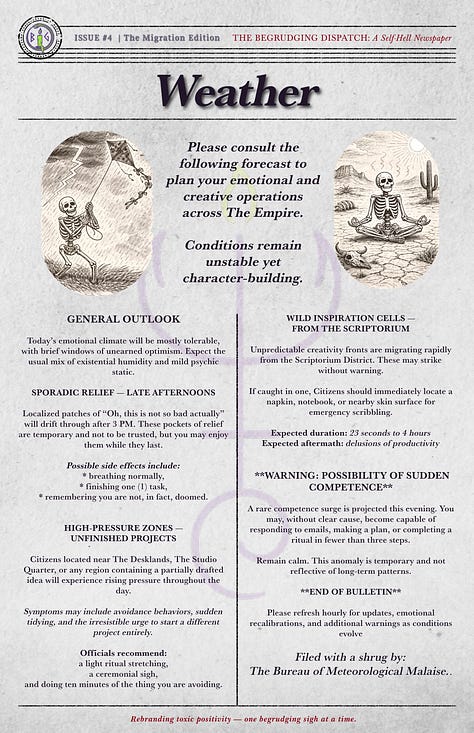 Please refresh weekly for updates, emotional recalibrations, and additional warnings as conditions evolve.