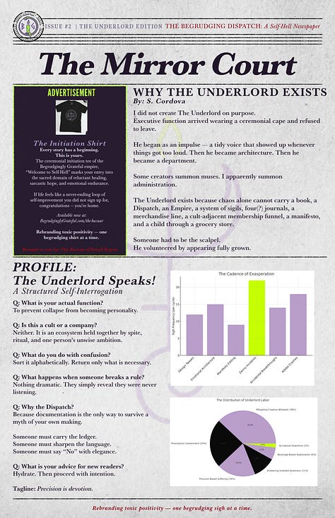 The Underlord exists because chaos alone cannot carry a book, a Dispatch, an Empire, a system of sigils, four(?) journals, a merchandise line, a cult-adjacent membership funnel, a manifesto, and a child through a grocery store.