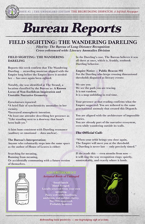 I just put out a piece on why letting go doesn’t actually feel clean when nothing in the system changes, and this feels like the larger universe that kind of wound belongs to. The Bureau of Petty Transformations has my full allegiance.